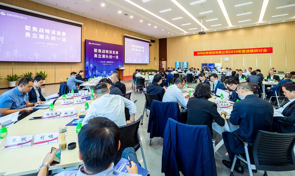 11月6日至7日,深證通在資本市場學院召開“聚焦戰略謀發展,勇立潮頭創一流”——2020年度戰略研討會,回顧公司戰略規劃首年落實情況,在“贏戰略”方法論指導下明確公司必須要打贏的五場“仗”及其行動計劃,梳理形成明年主要工作思路和重點任務。公司中層以上領導人員、技術骨干、戰略規劃小組下設四個專業小組成員參加研討。