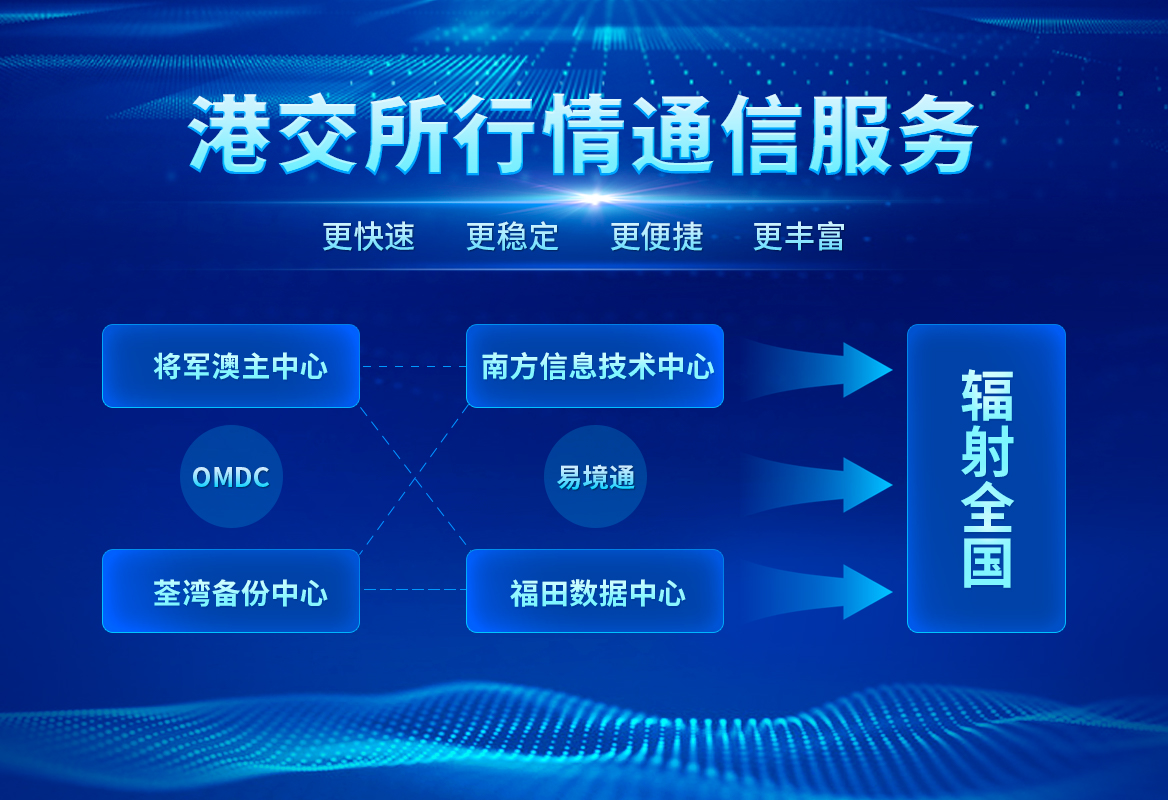 港交所行情通信服務作為深證通跨境基礎設施的重要組成部分,依托先進技術平臺與高效網絡架構,為行業機構提供穩定、豐富、低時延的港股行情解決方案。服務涵蓋港股標準版和卓越版兩種行情內容,支持運營商專線和南方信息技術中心托管光纖兩種接入方式,滿足市場機構多樣化、高質量的服務需求。